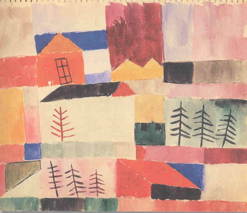 En esta acuarela Sempere utiliza un estilo geométrico que estará a partir de entonces muy presente en su obra. En este caso, utiliza estas formas rectángulares la mayoría para representar un paisaje de tonos alegres y aguados.