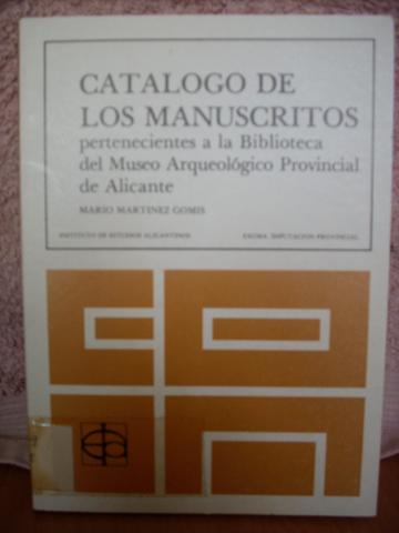 "Catálogo de los manuscritos pertenecientes a la Biblioteca del Museo Arqueológico Provincial de Alicante" (1983) Publicado por Federico Rubio Gomis el Sáb, 04/02/2017 - 18:51 Fecha: 1983Autor: Mario Martínez GomisArchivo: Colección: Instituto de Estudios Alicantinos nº 89Fuente: Federico Rubio GomisEtiquetas: libros1983MARQ
