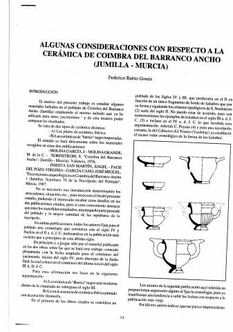 "Algunas consideraciones con respecto a la cerámica de Coimbra del barranco Ancho (Jumilla-Murcia)"