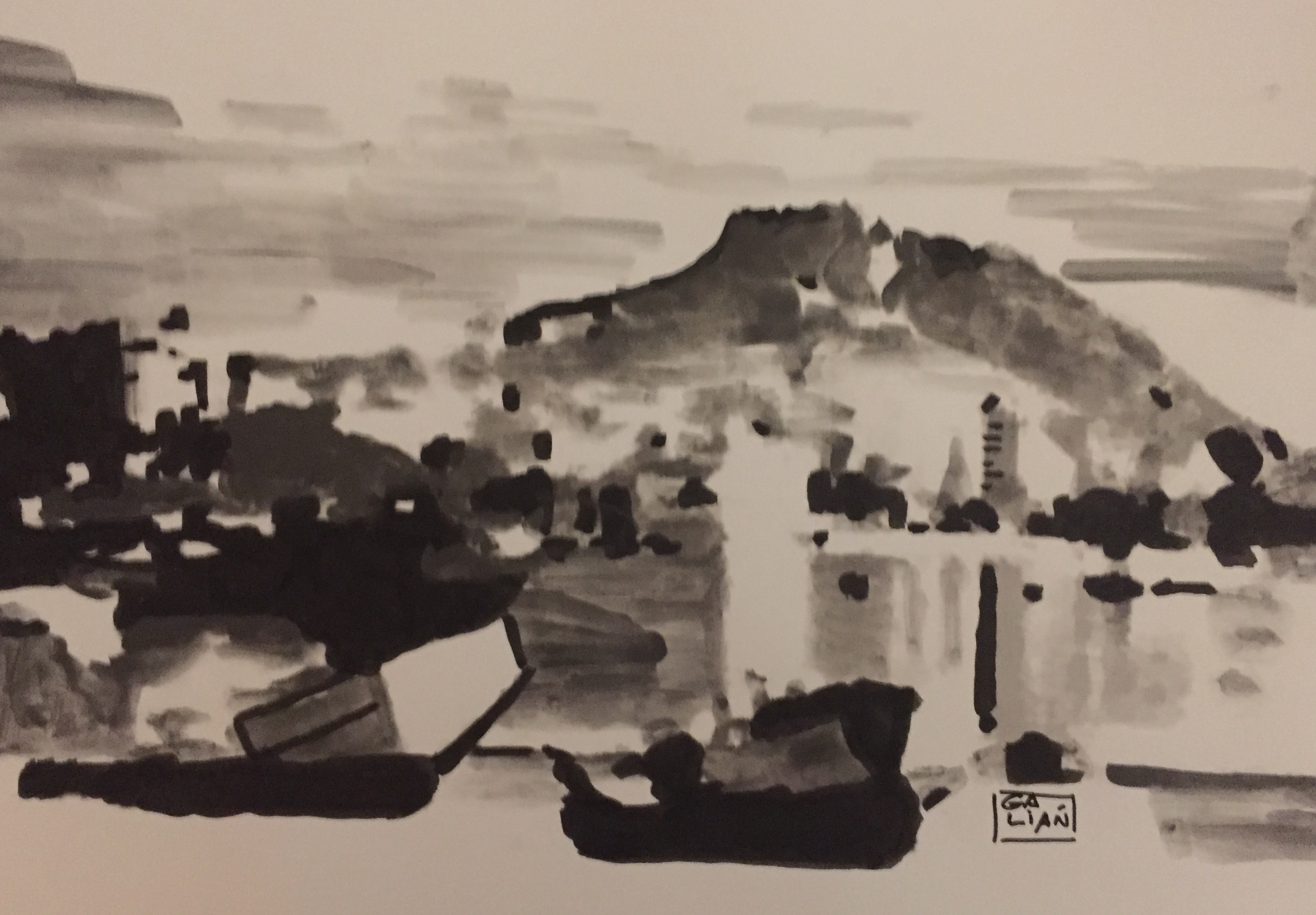 Aguada a tinta de la bahía de Alicante Publicado por David Rubio el Dom, 12/11/2017 - 19:17 Fecha: Años 1970Autor: Lorenzo CastejónArchivo: Fuente: Lorenzo Castejón