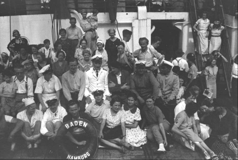 Además varios de los refugiados se hicieron esta foto con el capitán del barco Max Schaefer, a quien a buen seguro debían considerar un auténtico ángel de la guarda, y varios miembros de la tripulación del Baden. El fotógrafo fue el también refugiado Otto Wunderlich.