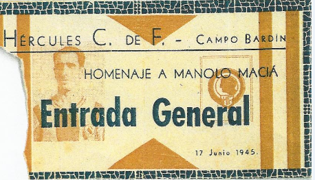 Entrada para el partido homenaje a Manolo Maciá (1945)