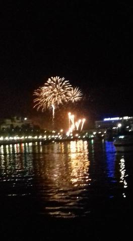 Disparados por la pirotecnia Coeters Dragón. Foto tomada desde el paseo marítimo del Puerto.