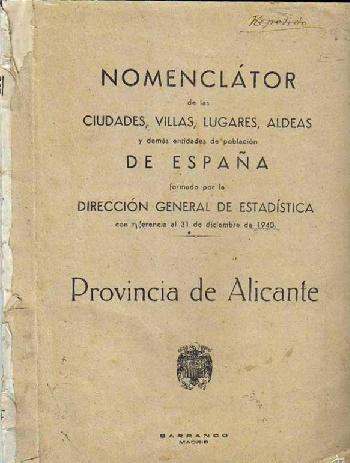 "Nomenclátor de las ciudades, villas, lugares, aldeas y demás entidades de población de España. Provincia de Alicante" (1941)