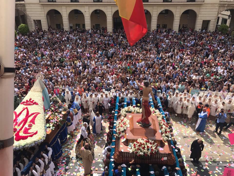 Como marca la tradición moderna, el paso del Cristo Resucitado y el de la Virgen de la Alegría se encontraron en la plaza del Ayuntamiento durante el Domingo de Resurección, ante una gran multitud presente. Se lanzaron unas 400.000 aleluyas que adornaron el cielo alicantino. Con esta procesión culminó la Semana Santa de 2017.