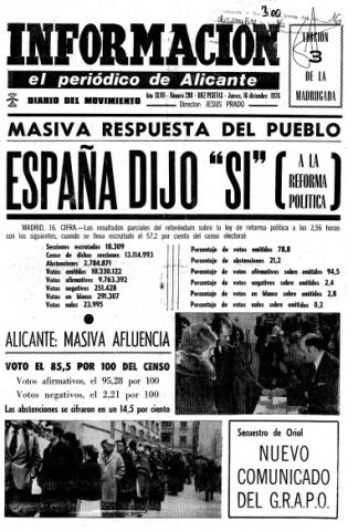 En Alicante hubo una participación algo superior a la media nacional y los votos positivos tambien fueron algo superiores (95,28 %).